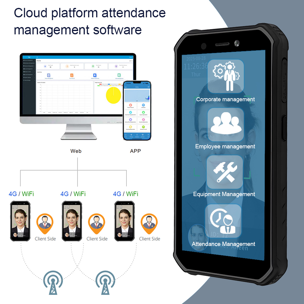 SI-HF2ハンドヘルド顔認識デバイスは、モバイル出退勤用に特別に設計されており、ディープラーニング顔認識アルゴリズムを利用して、高速かつ正確な識別を実現します。ポータブルで柔軟性があり、オフライン操作をサポートし、固定シーンの制限を打ち破り、ネットワーク環境が悪い場合でも安定した出退勤を保証します。また、優れた三防性能と高い耐圧性を誇り、過酷な環境にも適応し、長期的な安定運用を維持し、複雑なプロジェクトの人員管理に信頼できるサポートを提供します。