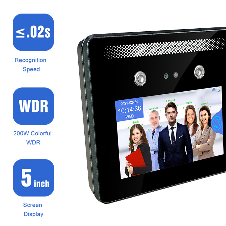それは時間の出席機械を働かせるとき、表面、rfidカードを支え、パスワード、QRコード同一証明方法はまた、直面するスクリーンのショーおよび検出の証明に横の5インチ スクリーンの表示設計5人を割り当てることができる。AI05装置は明るい日光の反射でWDRの技術、それをよくはたらくことができる採用する。 AI05装置はアクセス管理機械を働かせるとき、ある特定の人またはある特定の期限のためのマスクの検出および時間帯のアクセスの制限を支えることができる。権限管理とのアクセスを制御できるかどれが。